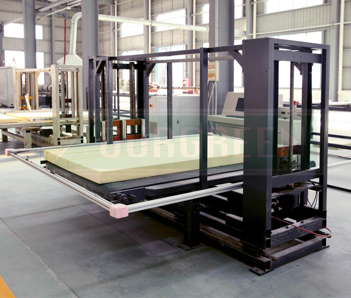 南京歐格設計制造的異型材切割機由托板、輸送帶、高速研磨料鋼線組成,通過電腦控制,使高速研磨料鋼線作為切削工具,在刀線輪的高速運轉下,將泡沫塊研磨成粉末,經過吸塵器吸附,由控制托板、輸送帶傳動,按電腦繪制的預定切割路徑進行切割加工。